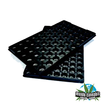 Bandeja de plástico conteniendo 60 pastillas de Jiffy de 30 mm de diámetro.